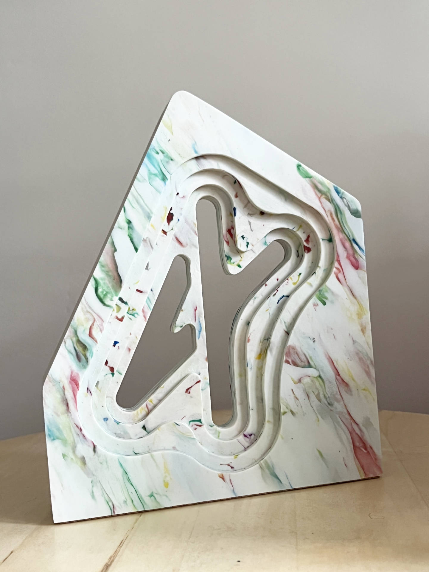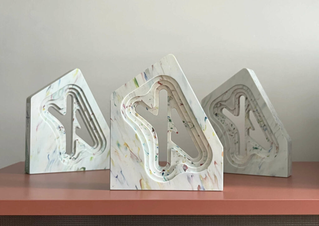 The design of the 4Youth statuettes was inspired by the event’s logo. The cut-out form reflects and echoes its shape. Each piece is made from 100% recycled material, featuring a unique, one-of-a-kind pattern. The dynamic texture of the material emphasizes the youthful and energetic character of the competition.